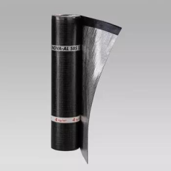 Nova-AL SBS è una membrana per impermeabilizzazioni con composizione della massa impermeabilizzante classificata BPE (Bitume Polimero Elastomero), secondo Norma UNI 8818. La massa impermeabilizzante viene realizzata modificando il bitume distillato con elastomeri termoplastici che conferiscono alla membrana un comportamento gommoso ed una elevata elasticità. Tali proprietà consentono alla membrana la capacità di mantenere flessibiltà e forma quando assoggettata ad allungamenti. Il manufatto viene prodotto industrialmente mediante impregnazione a caldo nella massa impermeabile allo stato fluido, di un’armatura in velo vetro rinforzato. Lo spessore voluto e/o la massa areica del telo, si ottengono con una successiva calandratura.